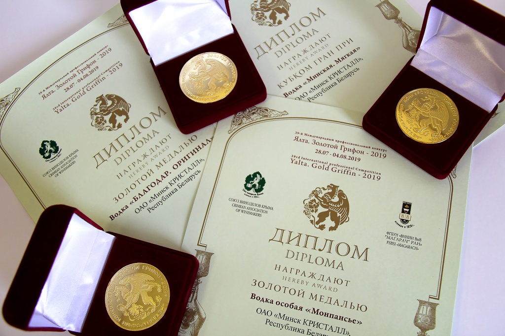 По итогам оценки профессионального жюри ОАО «МИНСК КРИСТАЛЛ» получило 3 золотые медали за продукцию: водка особая «THE RAKOVSHCHIKS. МОНПАНСЬЕ», водка «BLAGODAR. ORIGINAL» и экспортная позиция – водка торговой марки «КОНОПЛЯНКА. ЗАПОВЕДНАЯ». Экспортная водка ТМ «МИНСКАЯ. МЯГКАЯ» завоевала ГРАН-ПРИ!