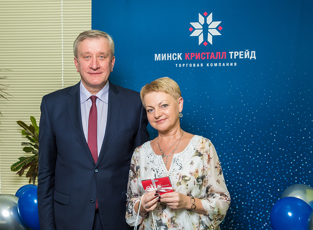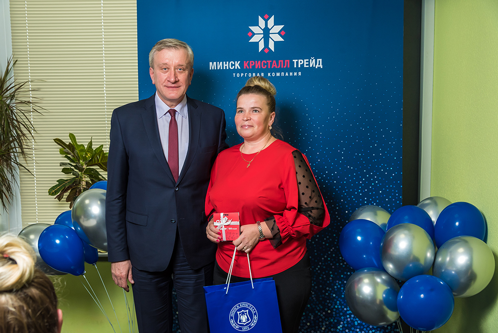 22 сентября победителей конкурса лично поздравил директор торгового унитарного предприятия «ТОРГОВАЯ КОМПАНИЯ «МИНСК КРИСТАЛЛ ТРЕЙД» Григорий Иосифович Петкевич. В торжественной обстановке он поблагодарил каждого за неоценимый труд, ответственность, приложенные старания и силы, а главное – за превосходный результат!