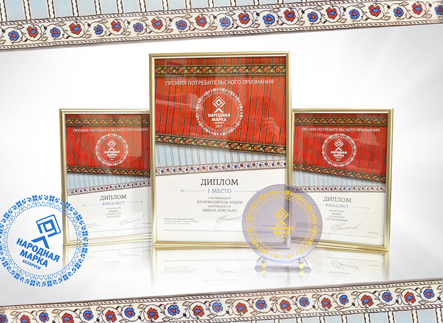 Приятно отметить, что ОАО «МИНСК КРИСТАЛЛ» - управляющая компания холдинга «МИНСК КРИСТАЛЛ ГРУПП» стало победителем в номинации «Производитель водки», заняв первое место. Кроме того, компания стала финалистом премии в номинации «Водка» с торговыми марками «Батькова» и «Стольградная».