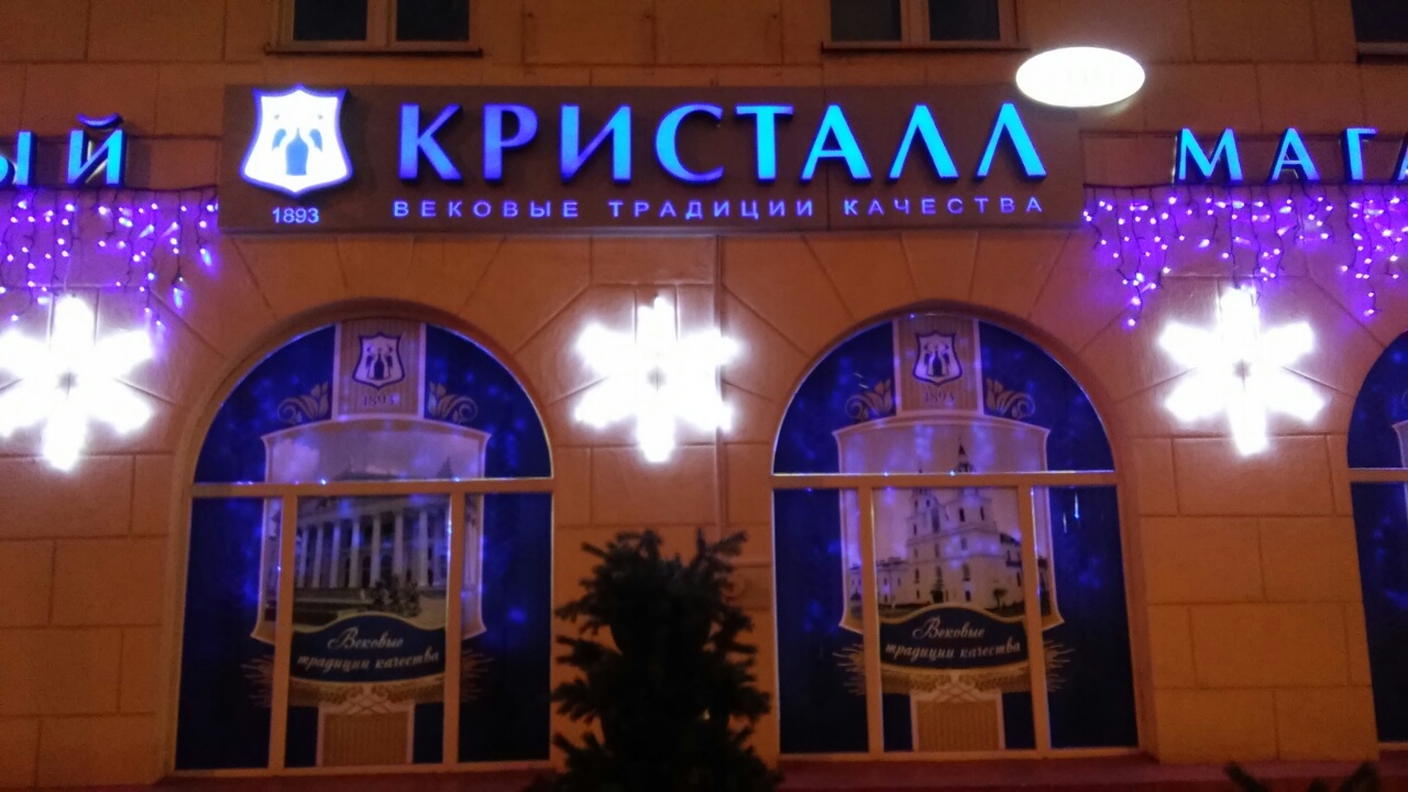 Магазин фирменной торговли «Кристалл 100» Торгового унитарного предприятия «ТОРГОВАЯ КОМПАНИЯ «МИНСК КРИСТАЛЛ ТРЕЙД», расположенный по адресу г. Минск, пр. Машерова, 8, награжден грамотой Комитета Архитектуры и градостроительства за лучшее новогоднее оформление малых объектов торговли.