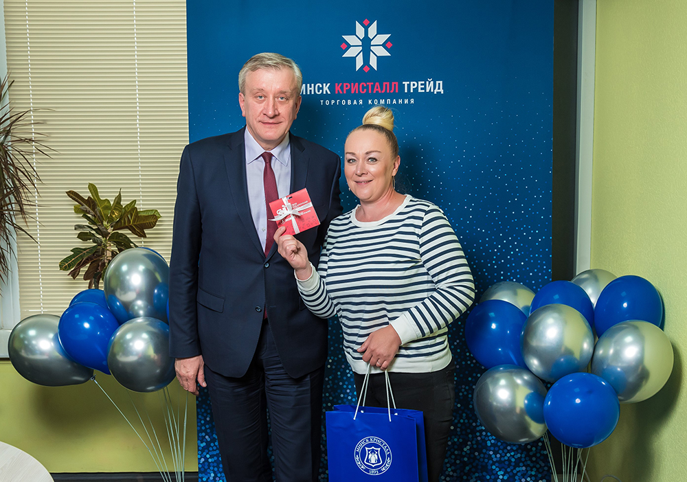 Кроме поздравлений и подарков от «МИНСК КРИСТАЛЛ ТРЕЙД», победителям были вручены сувенирные пакеты от ОАО «МИНСК КРИСТАЛЛ» - управляющей компании холдинга «МИНСК КРИСТАЛЛ ГРУПП».