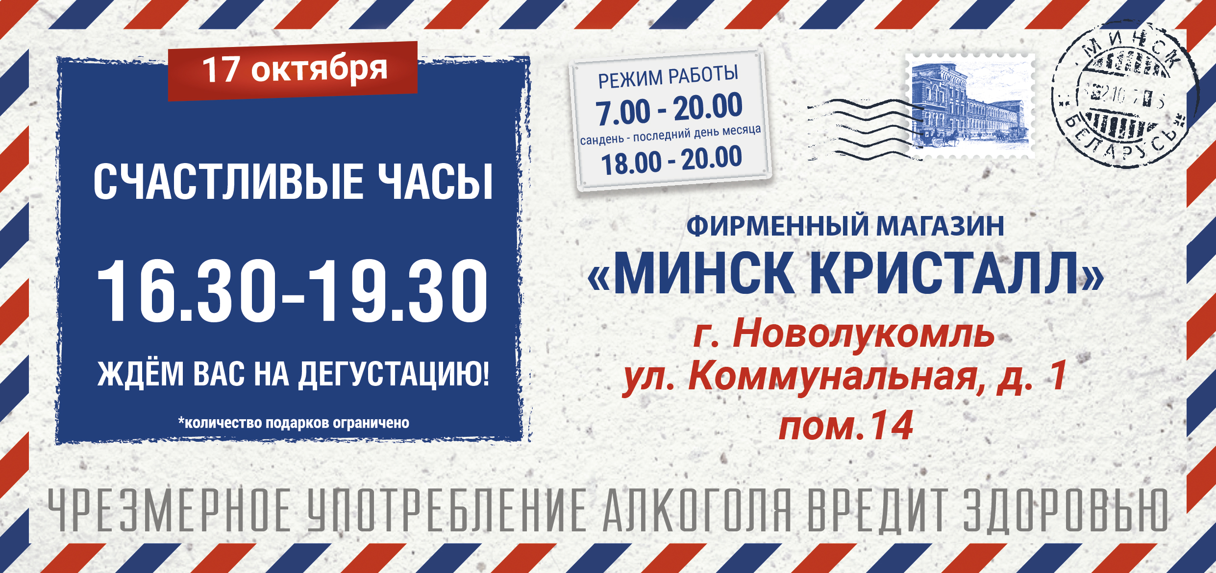 Приглашаем посетить фирменный магазин «Минск Кристалл» по адресу: г. Новолукомль, ул. Коммунальная, 1/14. Работает без выходных с 7.00 до 20.00.