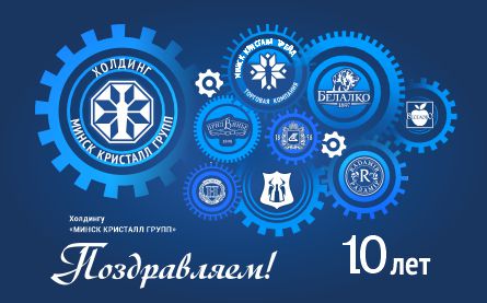 Торговое унитарное предприятие «ТОРГОВАЯ КОМПАНИЯ «МИНСК КРИСТАЛЛ ТРЕЙД» от всей души поздравляет холдинг «МИНСК КРИСТАЛЛ ГРУПП» с юбилеем – с десятилетием успешной работы!