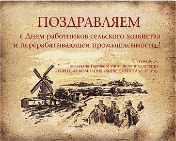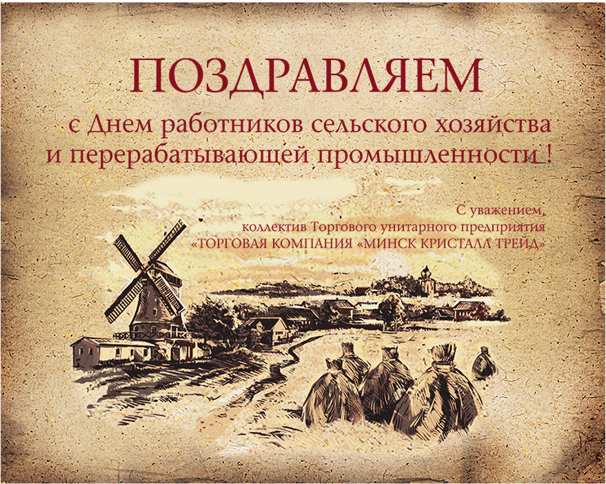 Пусть ваши усилия всегда приводят к впечатляющими результатами, а плоды Вашего труда превосходят самые смелые ожидания – ведь благодаря слаженной работе всего коллектива белорусский стол всегда богат и разнообразен!
