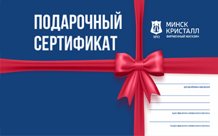 ПОДАРОЧНЫЙ СЕРТИФИКАТ фирменной сети «Минск Кристалл» — это отличный способ поздравить родных или друзей с важным событием, выразить благодарность коллегам или бизнес-партнерам.